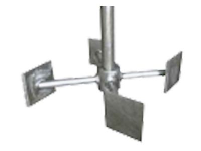 | 四葉泛能渦輪槳 | 徑流攪拌器,使用轉速范圍大,使用粘度范圍廣,具有高剪切力及湍流擴散能力。因其沒有圓盤,不會阻礙槳葉上下液混合,在有擋板槽中可以形成較大的對流循環,特別適用于剪切分散操作,同時因具有良好的循環和剪切能力,也用于一般的固體溶解、反應、傳熱、乳化、結晶、固體懸浮操作。  |