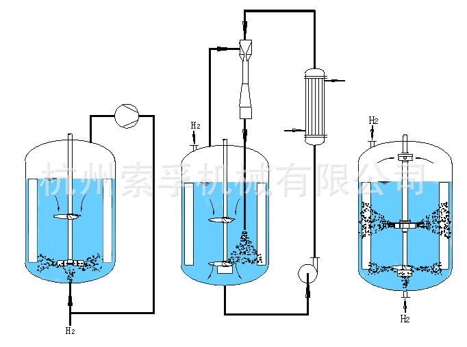 | 圖2 組全槳反應(yīng)器 | 圖3 循環(huán)式反應(yīng)器 圖4 自吸式反應(yīng)器 |