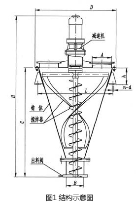該機主要由減速機、錐體、攪拌器、出料閥等組成,如圖1所示。