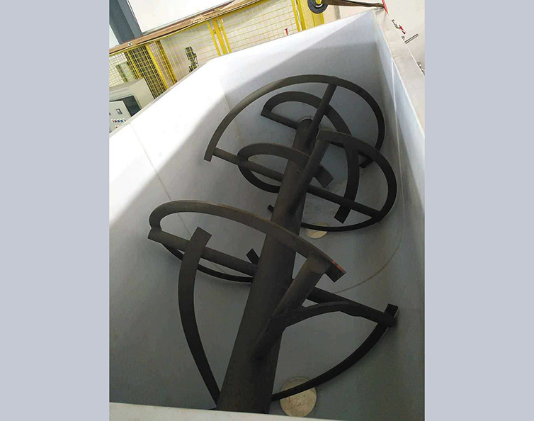 5、 正反旋轉螺帶安裝于同一水平軸上,形成一個低動力高效的混合環境。