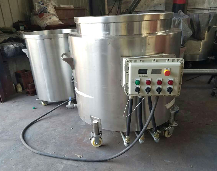 電加熱拉缸為雙層不銹鋼拉缸,加熱介質常規選用導熱油,用電加熱棒方式加熱,用于需要保溫或升溫物料的儲存或攪拌。不銹鋼材質,內外拋光,不容易掛料,且容易清洗,裝配4個橡膠工業腳輪,2個帶有剎車裝置,可以在現場輕松移動,儲存靈活性強,方便物料攪拌后轉移。主要配套用于分散機、研磨機,乳化機等設備。