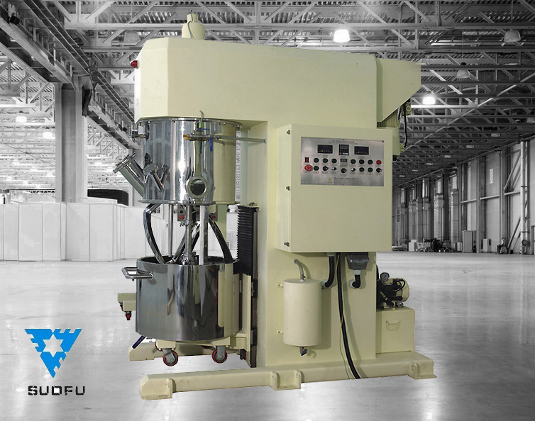 行星攪拌機是一種新型高效無死點混合高效、多功能、強制性混合、分散設備。其結構較為復雜,該機充分的結合了行星攪拌機和強力分散機的特點,將這兩種設備的優點融合于一體,既有高速分散功能又有低速攪拌功能;相比行星攪拌機低速攪拌槳的公轉有自轉,它還增加了一組高速分散軸,上面配置了一個分散盤,運作時自轉的同時又公轉,其速度可變頻調速。