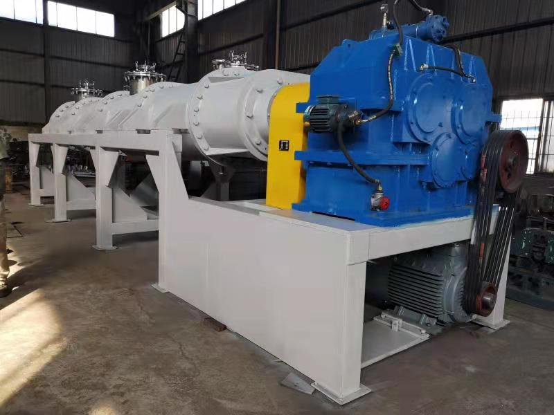 為了適應在真空狀態下的操作,專門安裝了適用于高粘度物料的齒輪泵式出料器。該出料器直接安裝在主設備上,消除了設備內的死角。齒輪泵式出料器在稍微超負荷的條件下工作,以保證物料能連續地排出,并輸入下一工段進行包裝。
