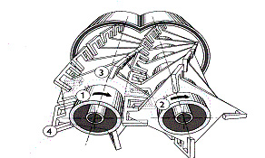| 圖1. WZS型自清潔脫揮器的工作原理 | 圖2. WZS型自清潔脫揮器動(dòng)態(tài)輪廓線與自除清潔作用 |