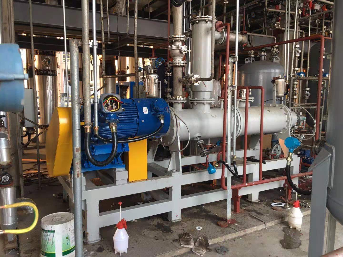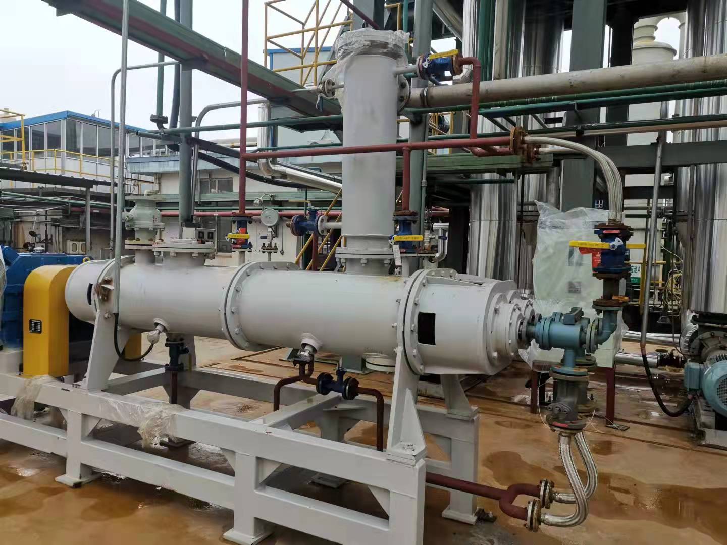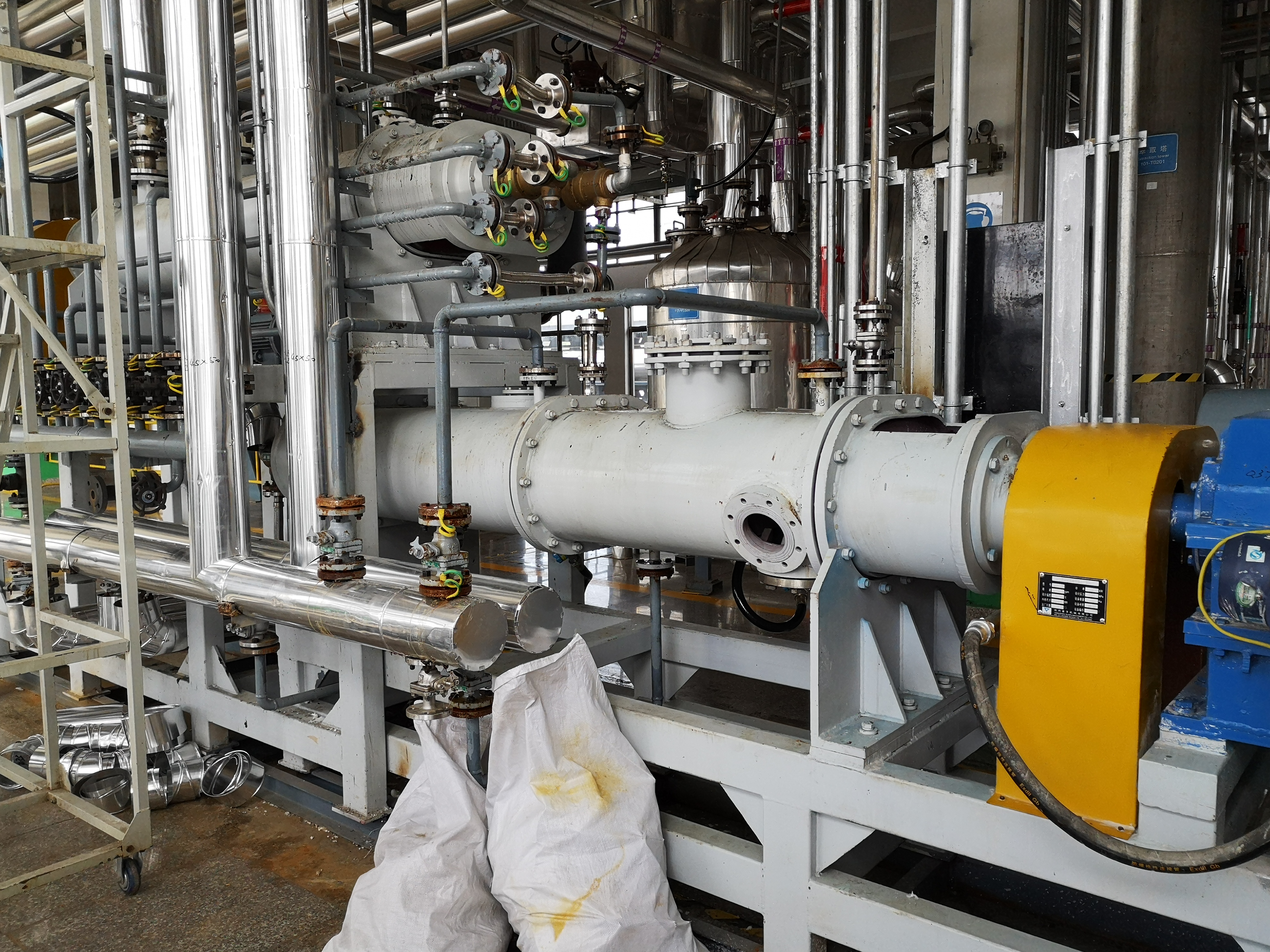 為了適應(yīng)在真空狀態(tài)下的操作,專門安裝了適用于高粘度物料的齒輪泵式出料器。該出料器直接安裝在主設(shè)備上,消除了設(shè)備內(nèi)的死角。齒輪泵式出料器在稍微超負(fù)荷的條件下工作,以保證物料能連續(xù)地排出,并輸入下一工段進(jìn)行包裝。