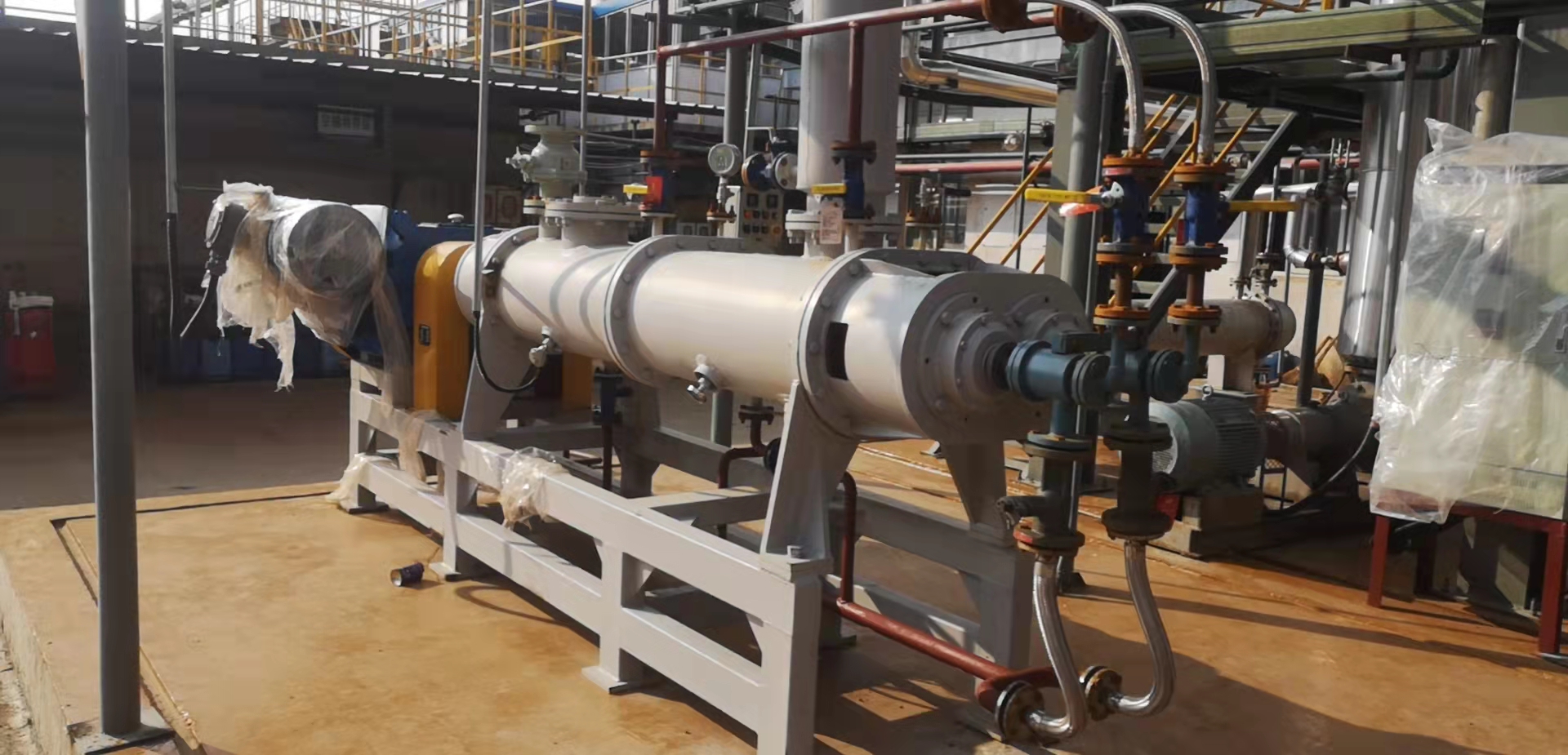 WZS型自清潔脫揮器的裝料系數(shù)通常范圍是50-80%,為氣-液分離和流動(dòng)留出了足夠的自由空間。設(shè)備內(nèi)的平均裝料高度取決于出料端的堰板,該堰板的幾何形狀和高度可調(diào)節(jié)。與螺桿擠壓類設(shè)備不同,WZS型自清潔脫揮器內(nèi)物料的軸向輸送速度與攪拌軸轉(zhuǎn)速無關(guān),使之對(duì)進(jìn)料量和組成的變化都具有極好的適應(yīng)性,并可減少設(shè)備的磨損。