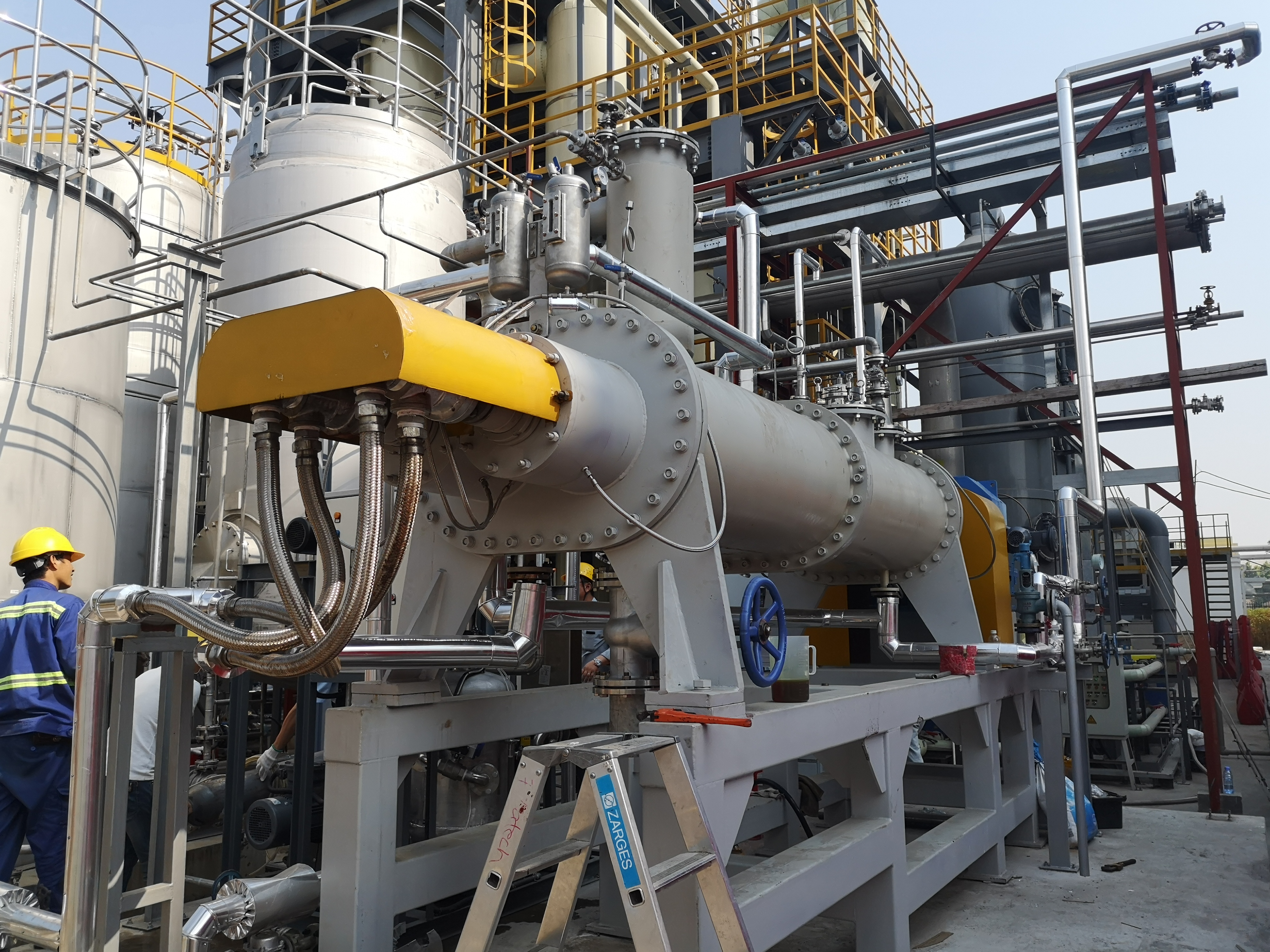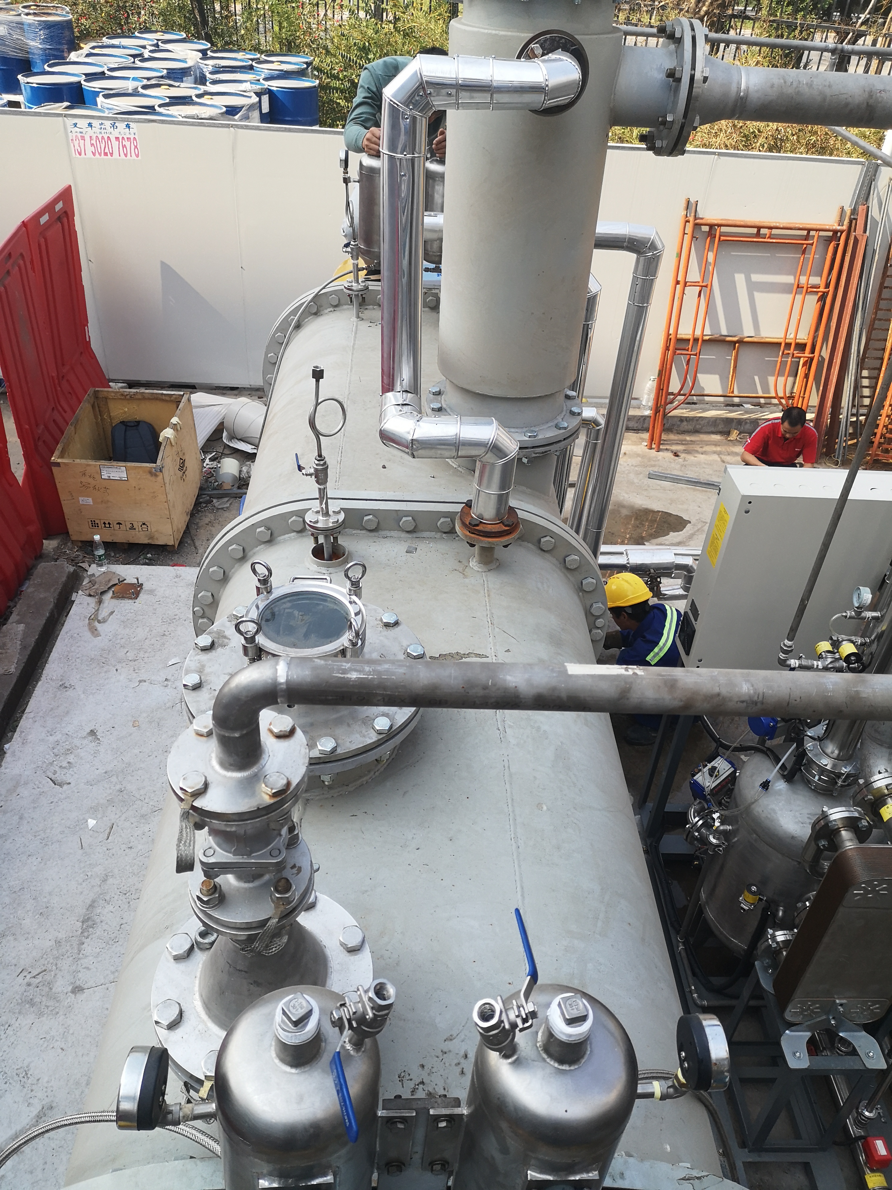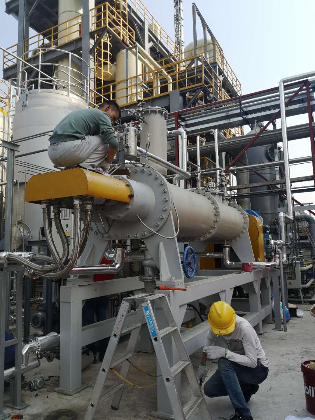 安裝在反應器頂部的聚氣室用于氣體排放。聚氣室可加熱,以避免氣體冷凝和回流。由于聚氣室的口徑較大,汽體在聚氣室里的流速極低,即使在高真空的條件下,液滴的夾帶量仍極小。