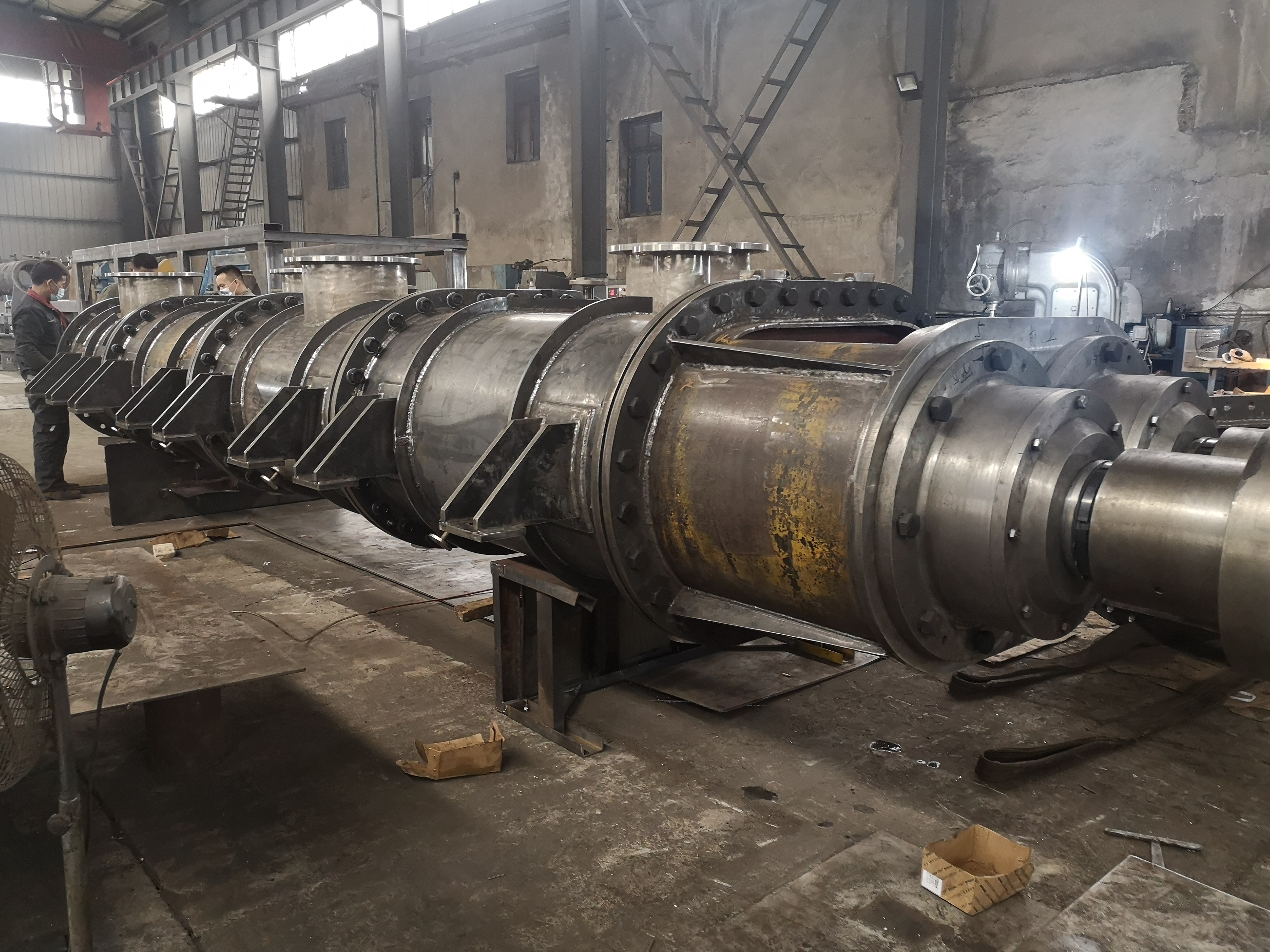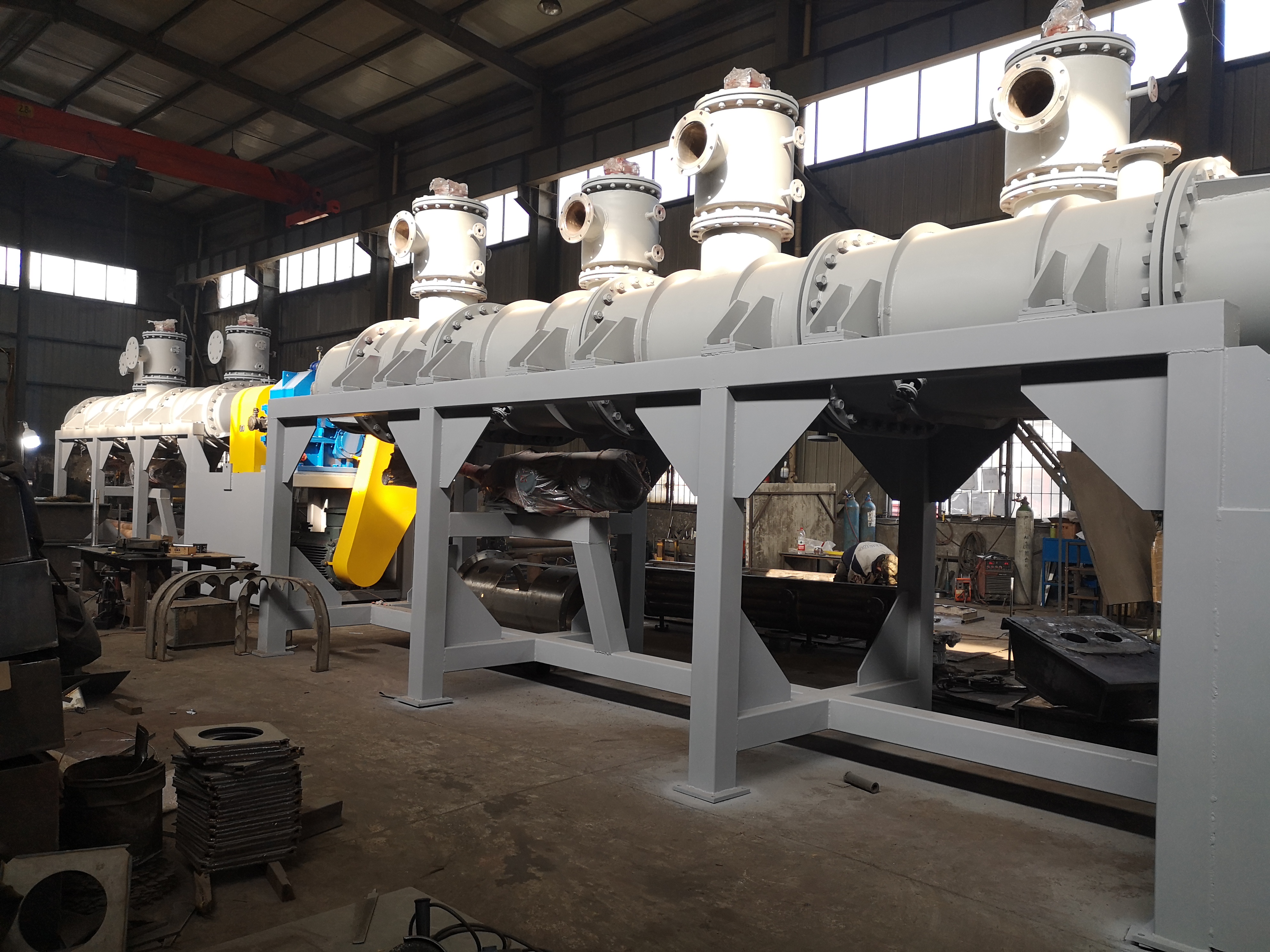 為了盡量增大單位設備容積的傳熱面積,WZS型自清潔脫揮器的殼體、攪拌軸和攪拌槳都通有導熱介質。強力的混合和捏合作用能有效地使物料更快地表面更新,該作用與具有自清潔功能的傳熱面相結合,從而確保熱、質傳遞所需的高表面更新速率。